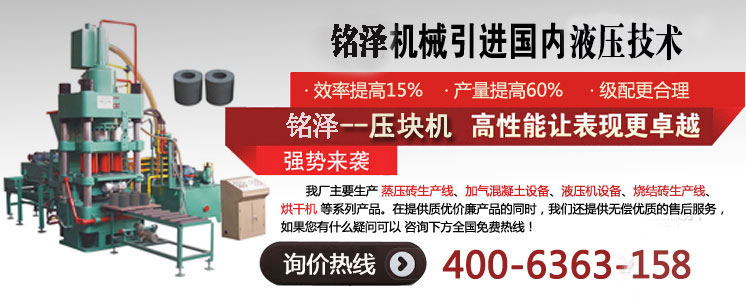 以上給大家提供的是本公司粉煤灰蒸養(yǎng)磚機的技術(shù)參數(shù),詳情可咨詢?nèi)珖赓M熱線:400-6363-158 來了解我們的產(chǎn)品,銘澤機械將給您一個滿意答案!不失時機才能創(chuàng)造大效益。趕快來電話吧!